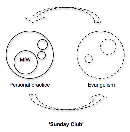 A ‘Sunday club’ worshipper (and who’s to say that I’m not one?) might be modeled like this: