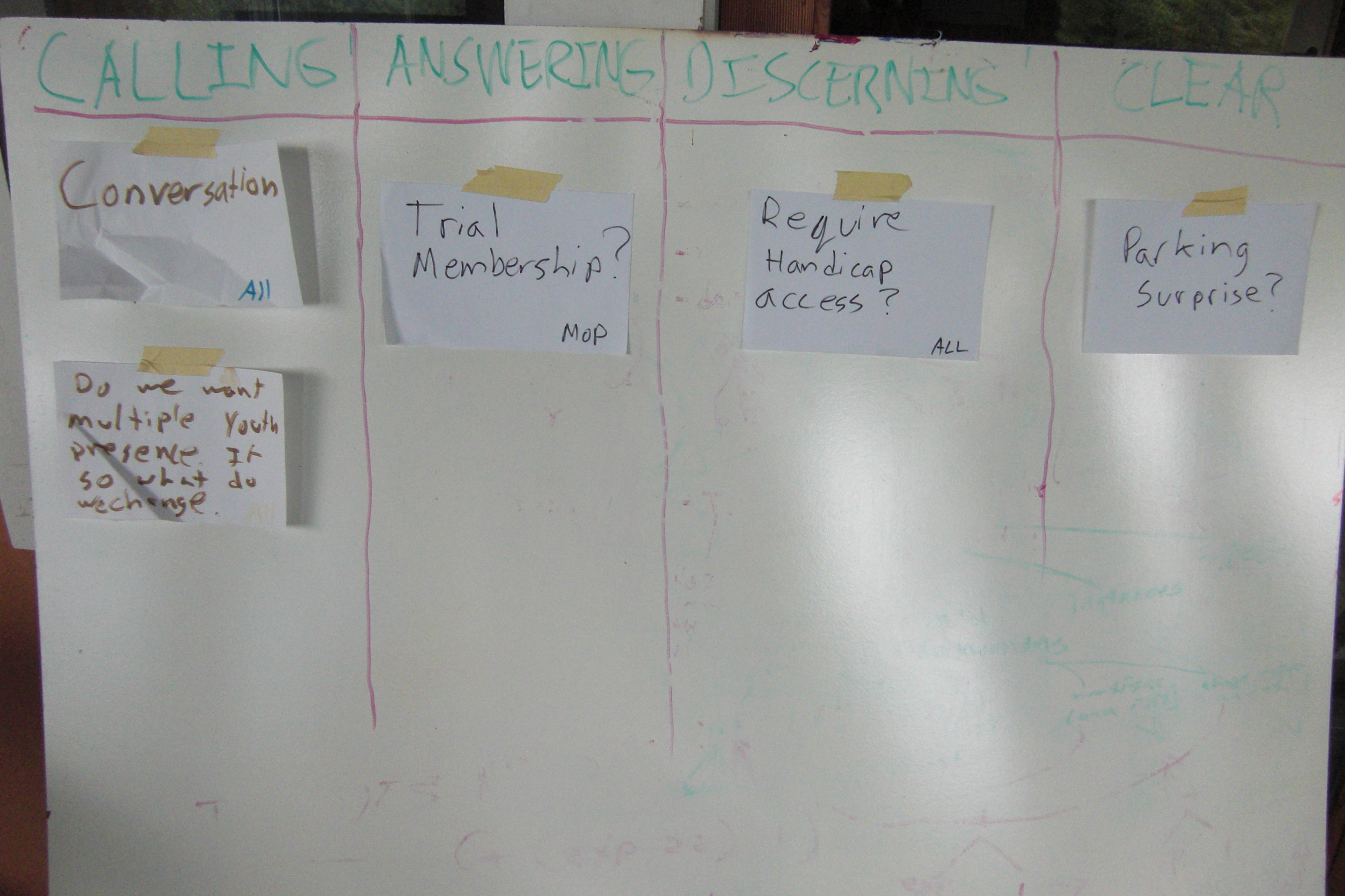 2. Thanks Imran! I can’t say I understand the Kanban process beyond the visual handle it gives on the discernment process. One of it’s advantages is that everything the community is tackling or thinking about can be acknowledged without that meaning something has to be done straight away (as in the ‘calling’ column). You can see the sifting process. With a linear agenda you follow a preset course and there’s a pressure to get to the end and tick everything off. With the Kanban board you address the biggest priority and and anything that’s not addressed remains on the board till the next time.